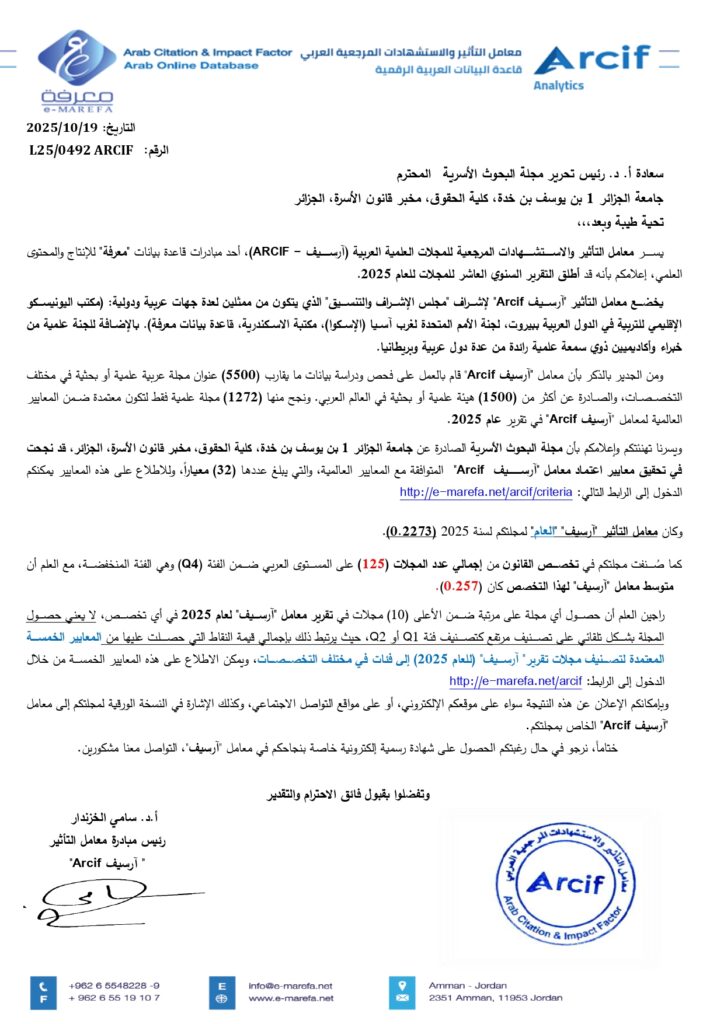 تقييم مجلة البحوث الأسرية في معامل أرسيف لسنة 2025
